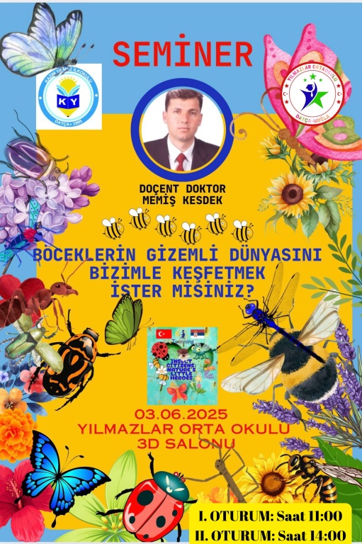Fen Bilimleri Öğretmenimiz Ali ERGEN ve Türkçe Öğretmenimiz Elvan KIŞ'ın değerli rehberliğinde gerçekleştirilen etkinliğimizde, Fethiye Ziraat Fakültesi / Bitki Koruma Bölümü / Entomoloji Anabilim Dalı Öğretim Üyesi Sayın Doç. Dr. Memiş KESDEK'in etkileyici sunumuyla böceklerin ekosistemdeki vazgeçilmez rolünü ve biyolojik çeşitliliğe katkılarını detaylı bir şekilde inceledik. Değerli katkıları için Sayın Doç. Dr. Memiş KESDEK'e sonsuz teşekkür ederiz.